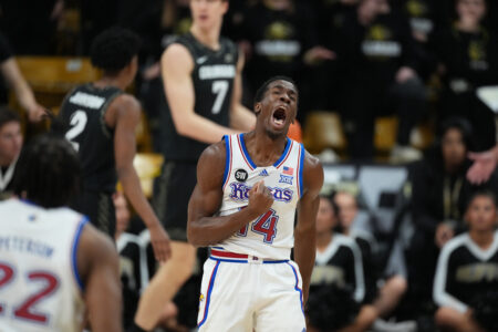 “Look, part of it is we didn’t finish in our transition,” he added. “I said this out there, KU was the better transition team on offense and defense. We got numbers, we got (an) advantage break, and we don’t score, and they got an advantage break and they do score, and that play that you referred to happens. That’s a big turning point, momentum shift, and we never quite recovered from that.”