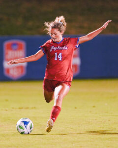 CU striker Hope Leyba, who entered the night tied for the national lead with 21 goals on the season, was held to just two shots on the night, though she nearly equalized for the Buffaloes in the final minutes. KU and CU tied with 13 shots apiece on the evening, but the Jayhawks got six on goal to their opponents’ four.