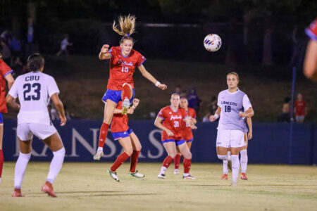 The Jayhawks did exactly that in the fourth minute of Friday night’s match at Rock Chalk Park when Caroline Castans played in a service from the left wing for Saige Wimes, whose header bounced past Cal Baptist goalie Mikayla O’Brien into the bottom right corner of the goal.