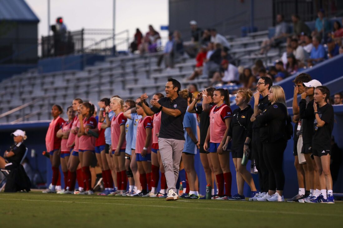 The Kansas women’s soccer team battled No. 24 West Virginia to a 2-2 tie in a Big 12 Conference match Thursday night at Rock Chalk Park, but Kansas head coach Nate Lie was definitely hoping for three points from a win rather than one from a draw.