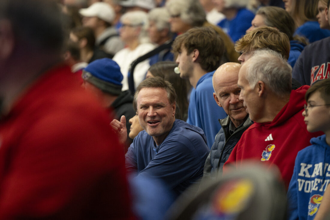 Kansas men’s basketball head coach Bill Self cheered on the Jayhawks against Miami in the second round of the NCAA Tournament in Horejsi Family Volleyball Arena on Friday, Dec. 5, 2025 in Lawrence.