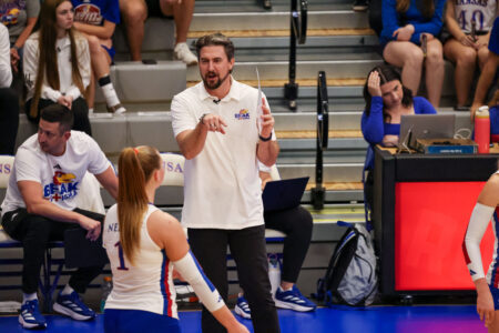 WVU’s block put up little resistance against KU, which hit .484 and only got blocked a single time. Four Jayhawks reached double-digit kills, led by Grace Nelson, who had 13 to go with eight digs.