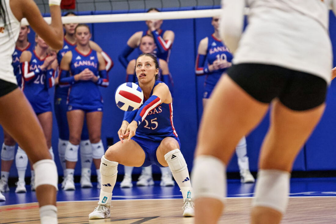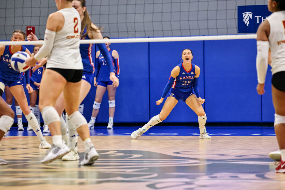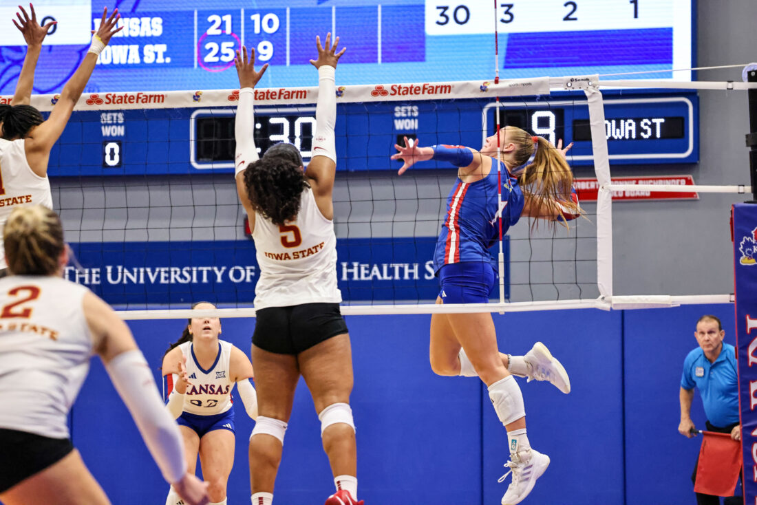 KU’s offense executed at a high level from the beginning, holding a .538 team hitting percentage at one point and taking a 13-9 lead after Ptacek’s fourth kill of the set on another well-executed slide. Iowa State halted the momentum with four consecutive points to tie the score at 13 before the teams traded the next three points, as Swanson’s second kill of the match gave the Jayhawks a slim 15-14 lead at the media timeout.