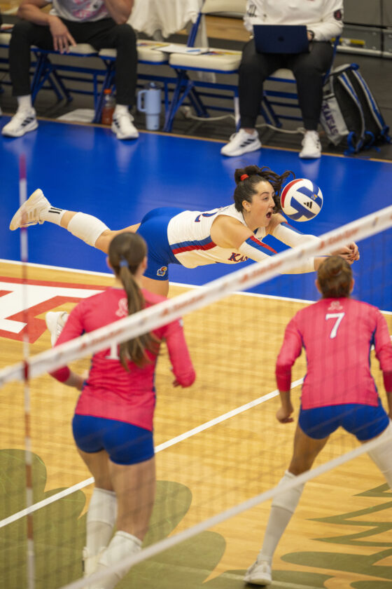As a team, KU hit .320 on the match with 50 kills and 11 errors on 122 attacks.