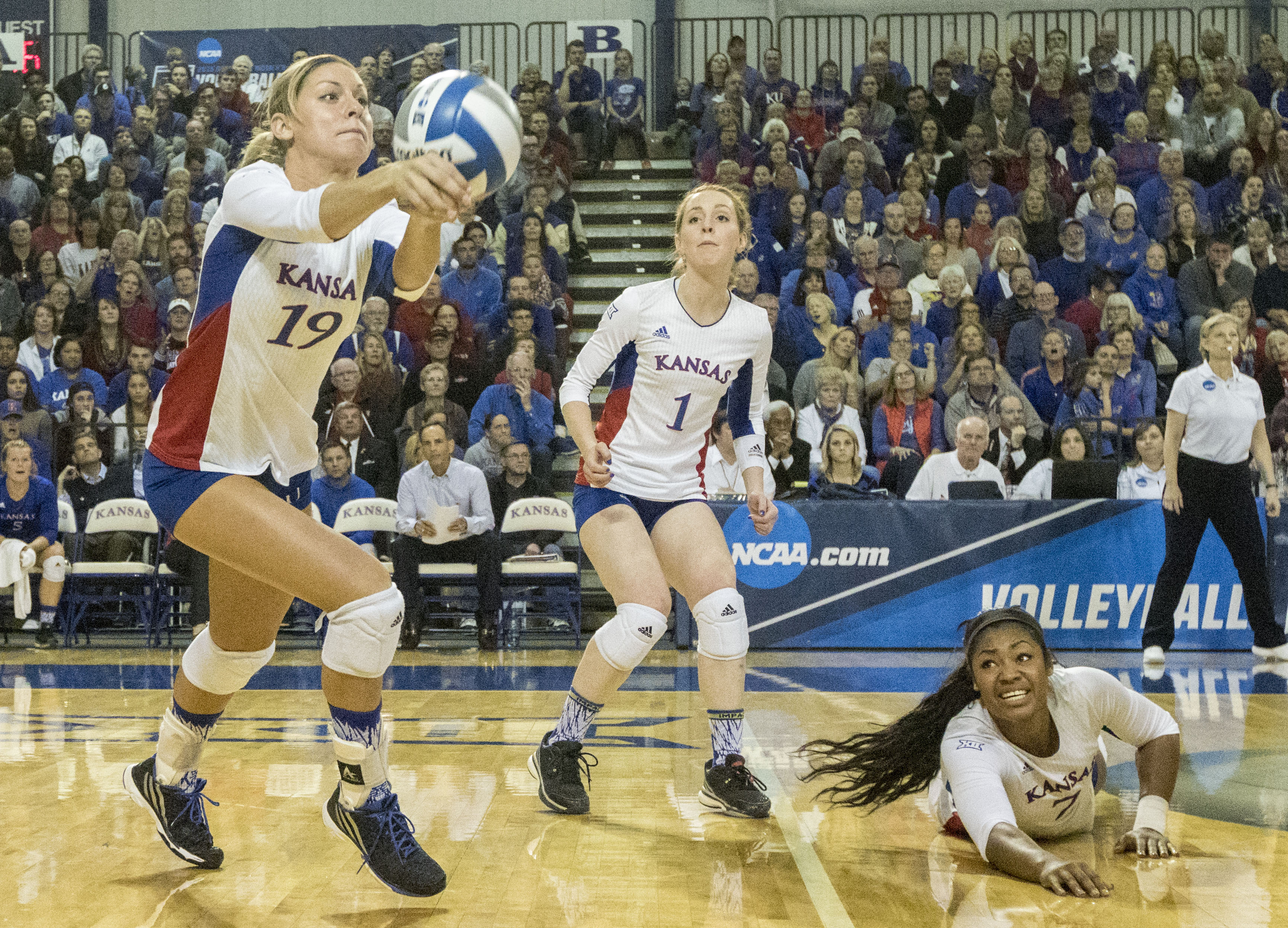Sophomore Caroline Crawford sealed KU’s first trip to the Sweet 16 since 2015 with a kill set up ...