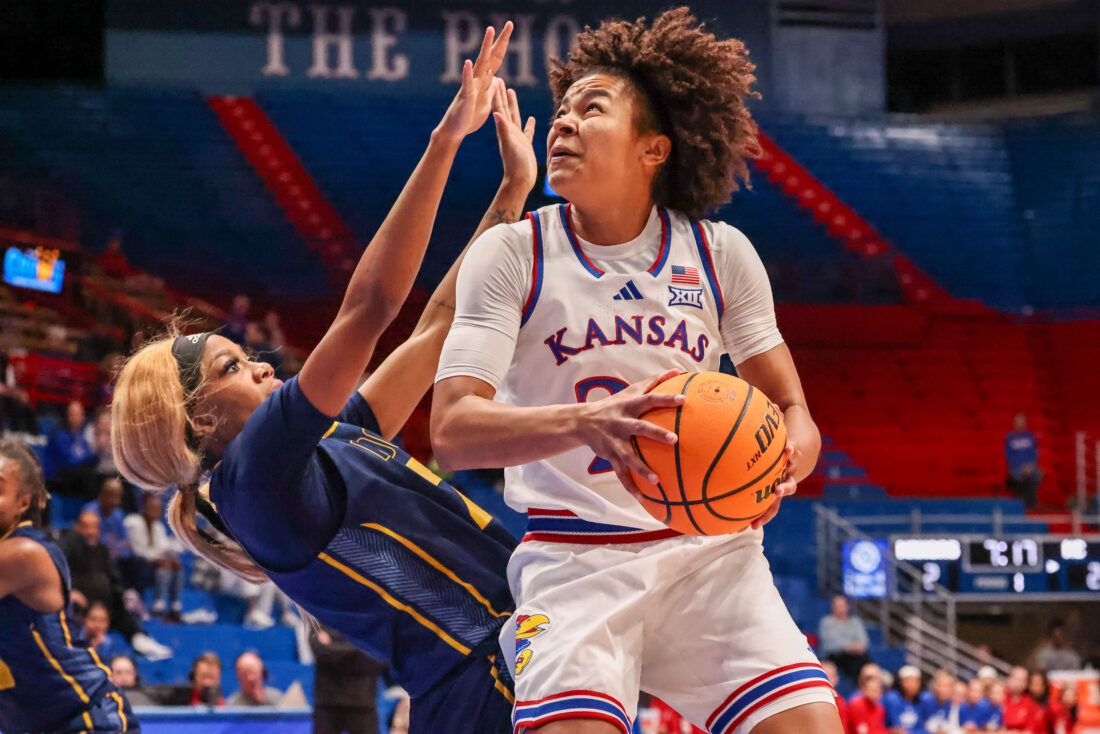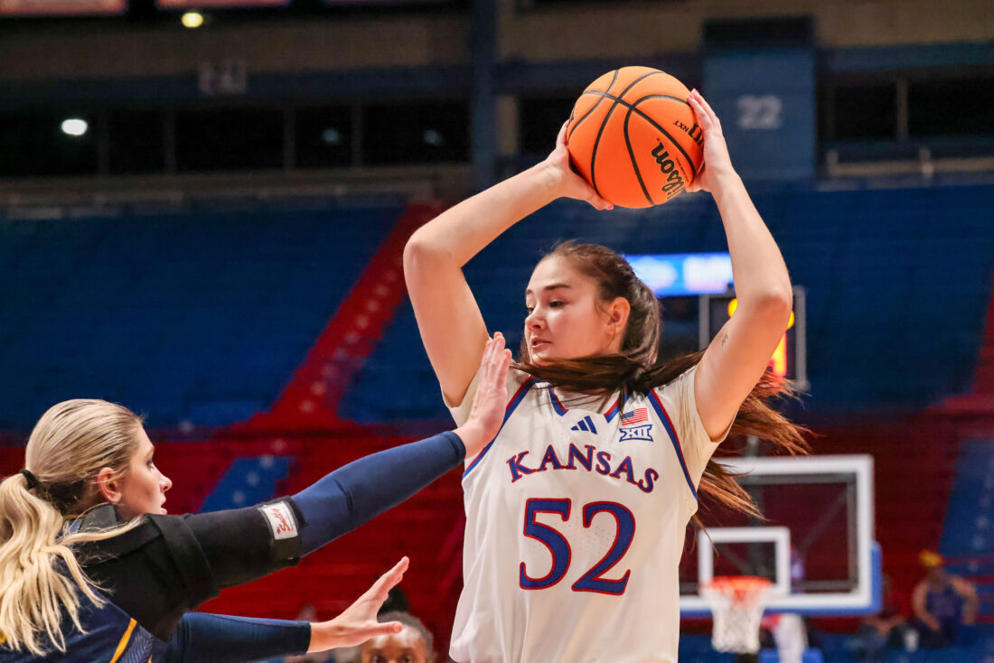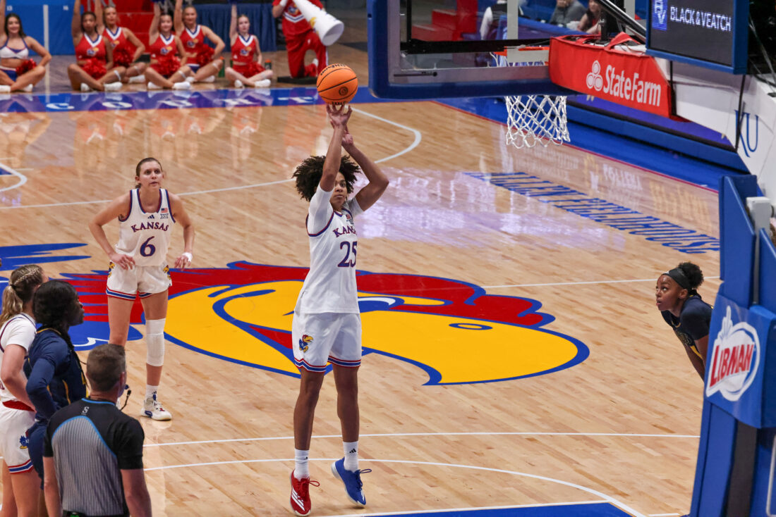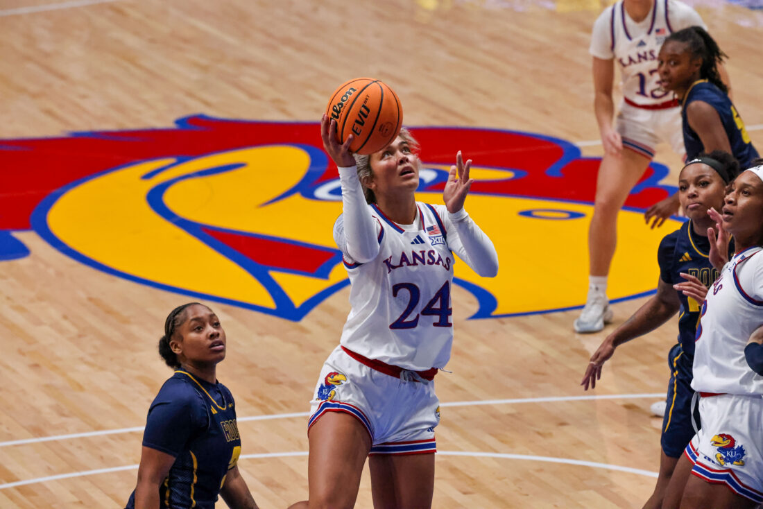 “There’s obviously things that we were looking for in terms of, you know, when you go back to our exhibition game, I thought our transition defense in the first half in that game was really poor,” Kansas head coach Brandon Schneider said after Wednesday’s victory. “We worked really hard on it and I thought there were times tonight (that) it was significantly better and then even transition offense, our outlets were much cleaner, they were deeper, we got a lot more in transition when we got stops.”