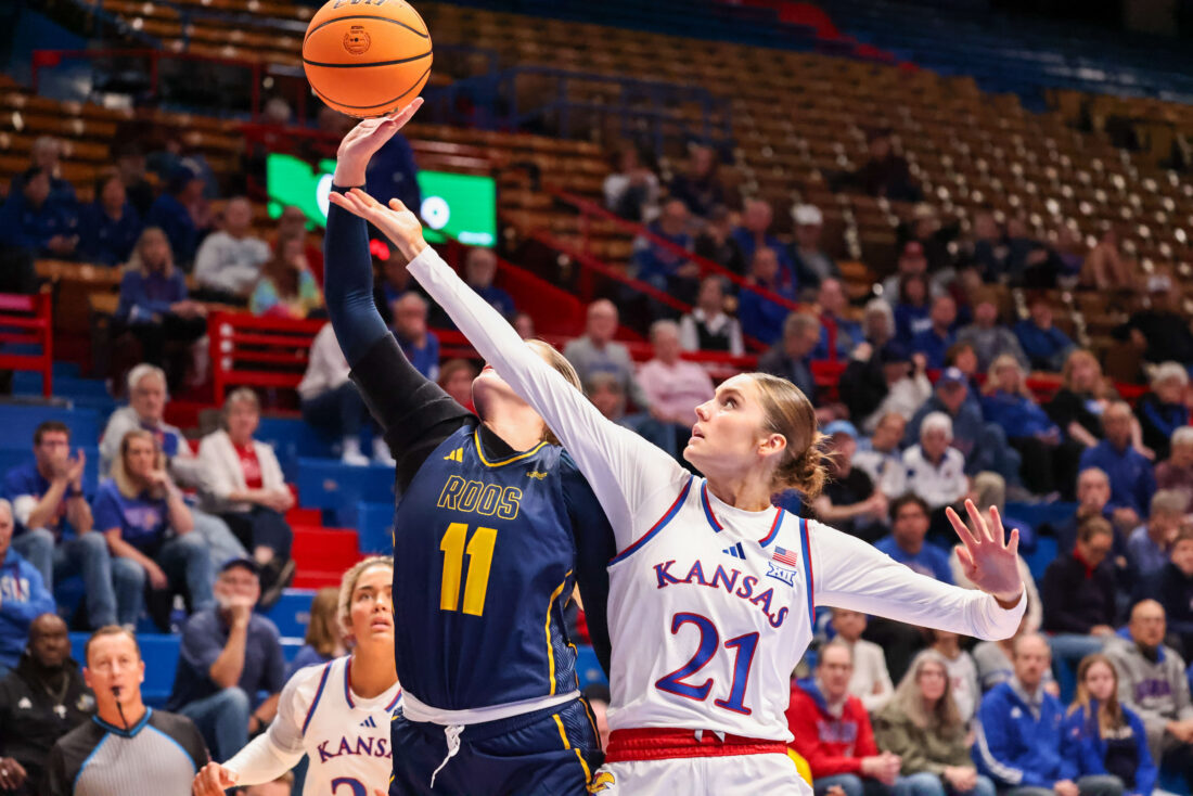 The Kansas women’s basketball team started the season off with a win on Wednesday night when it took down the Kansas City Roos by a score of 74-64.