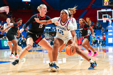 KU was led in scoring by junior guard S’Mya Nichols, who finished the game with 15 points and six assists. The Jayhawks were without freshman forward Jaliya Davis, who missed the matchup with what Kansas head coach Brandon Schneider called “lower leg pain.”