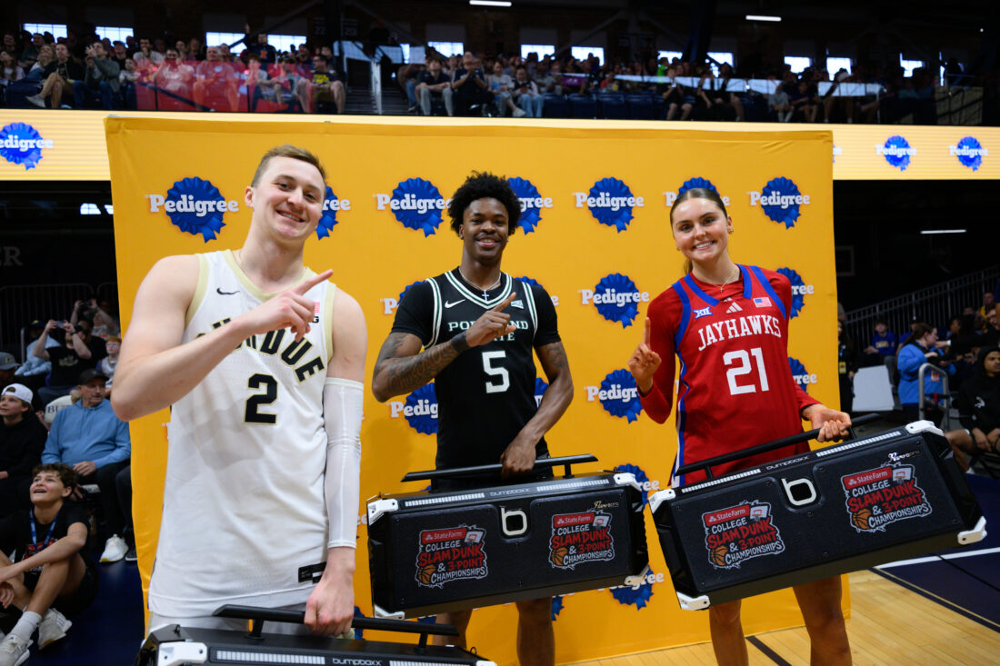 Throw in the Team Shootout, in which Evans teamed up with Jaylin Henderson of Portland State men’s basketball and Fletcher Loyer of Purdue men’s basketball, and she won three events in total on the night.