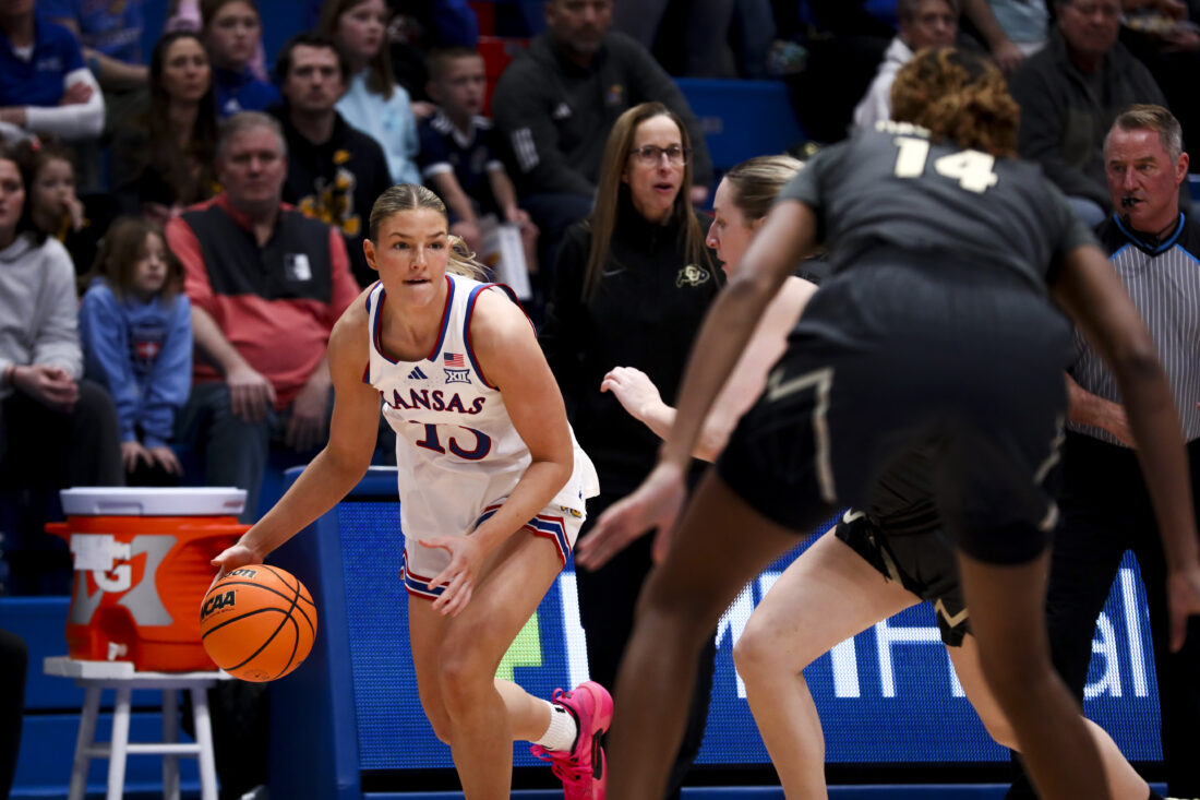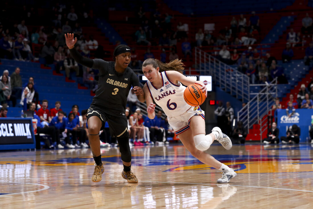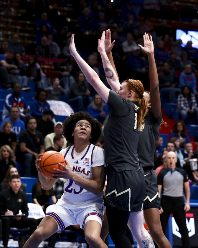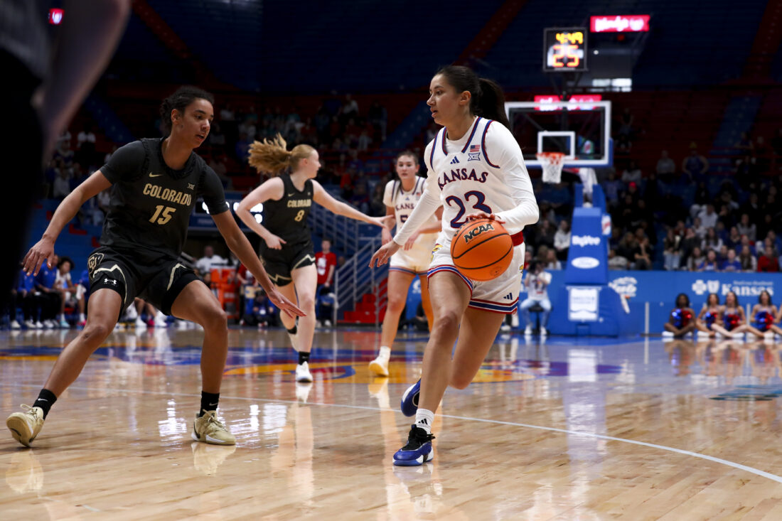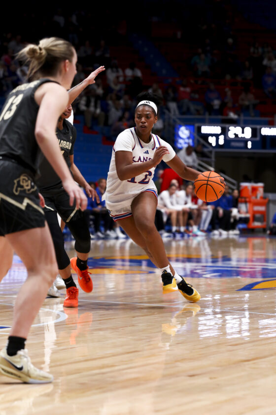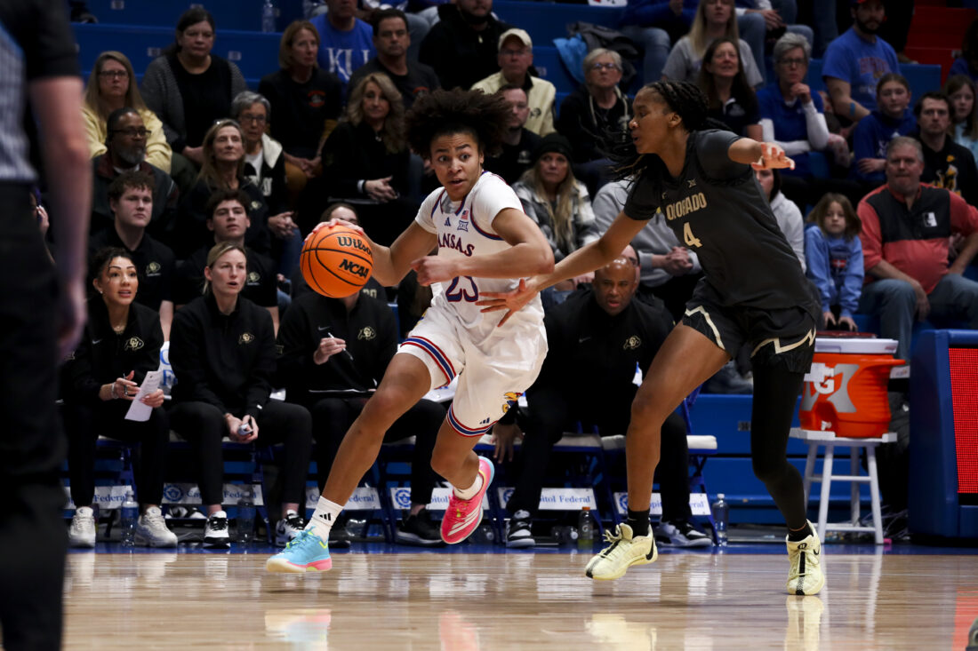 Kansas led by eight points with nine minutes left in regulation before a scoring drought of five minutes and 53 seconds allowed Colorado to reclaim the lead. Free throws by freshman forward Jaliya Davis and junior guard S’Mya Nichols, plus six straight misses from the line by Colorado, helped Kansas force overtime, but the Jayhawks never led in the extra period as the Buffaloes pulled away.