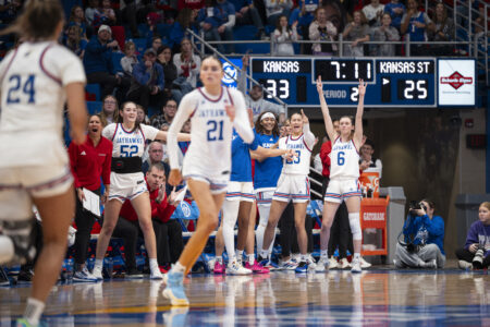 Harshaw opened the final period with another bucket for Kansas. Later, just over three minutes into the quarter, Harshaw collected her second 3-point basket to push the lead to 77-54, and the teams traded misses for the next minute before K-State used its final timeout with 5:32 left. Davis brought her point total to 22 with another layup and the Wildcats couldn’t find any rhythm, as the Jayhawks piled the points on.