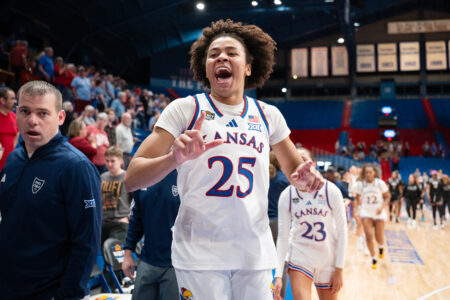 That lead kept growing. Nichols added another 3, and received a technical foul on the ensuing celebration, and junior guard Brittany Harshaw sank one from deep as the Jayhawks were able to hold the lead down the stretch and take home a 79-70 victory.