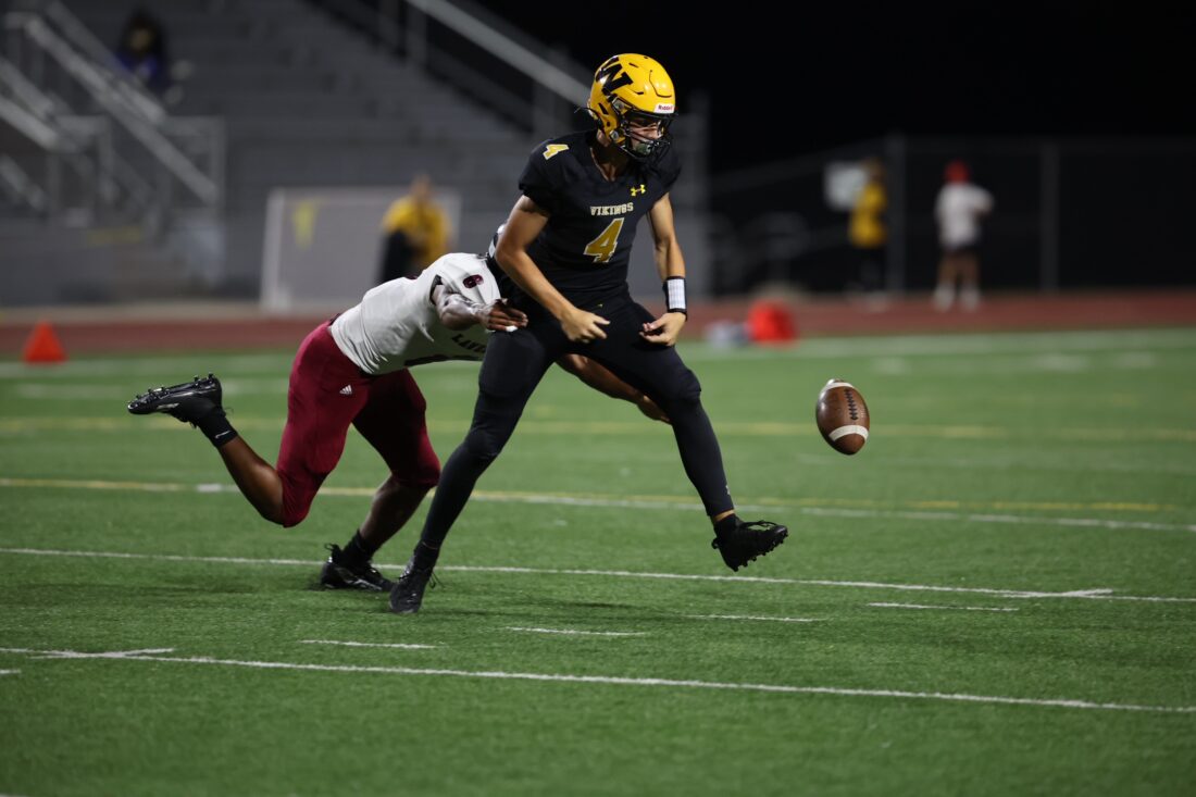 Unable to capitalize on the turnover, the Vikings were victims of three more unanswered scores – a 39-yard touchdown pass from Bowen to senior tailback Malcolm Paul; another short-yardage Bowen touchdown run; and a 34-yard touchdown pass from Bowen to senior receiver Mason Mosiman – heading into halftime trailing LHS 28-0.