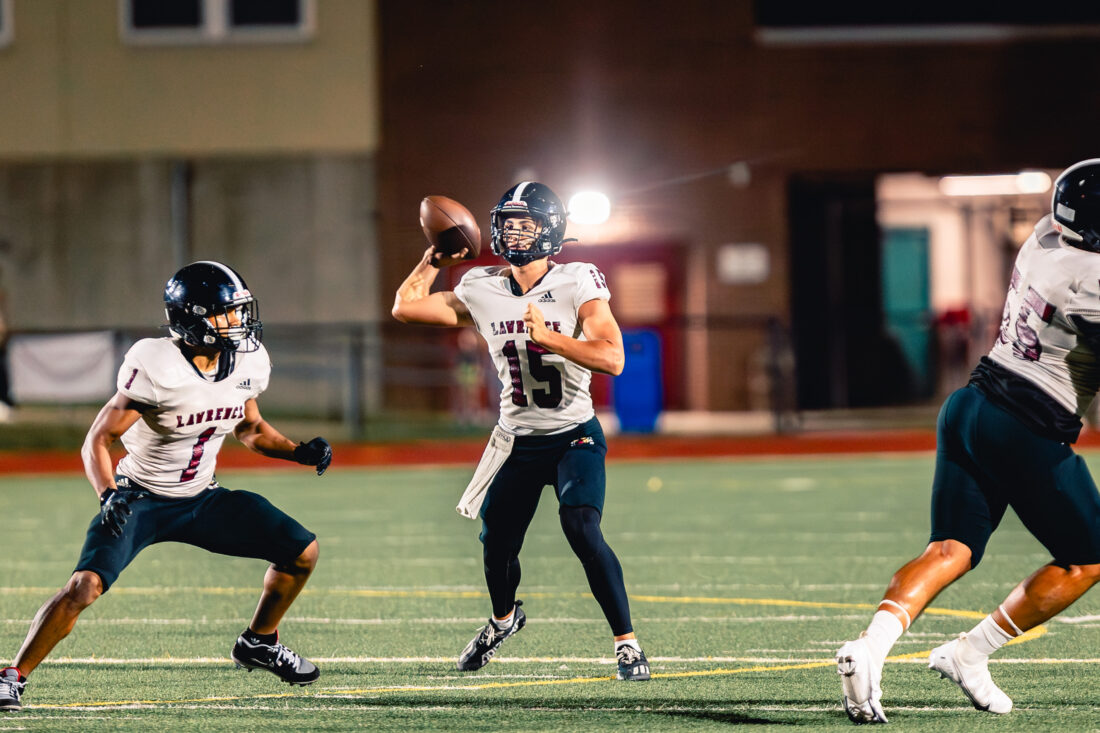 “We have been so good there… but that’s got to be fixed,” Lawrence coach Jason Thoren said of the negative plays. “When we don’t do that, we’re pretty tough to stop. We can march down the field, but if you put yourself behind the sticks, then this is what happens.”