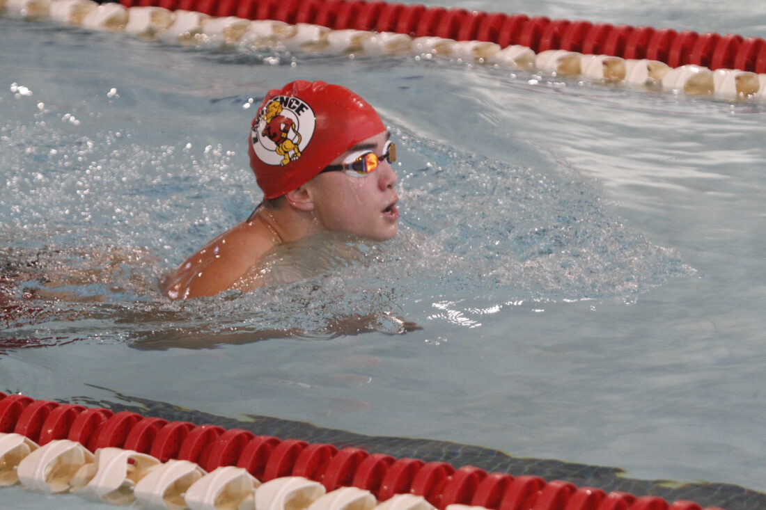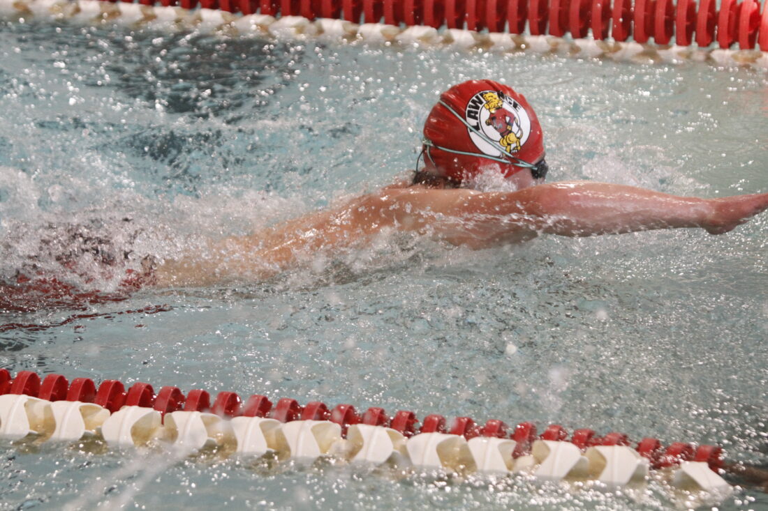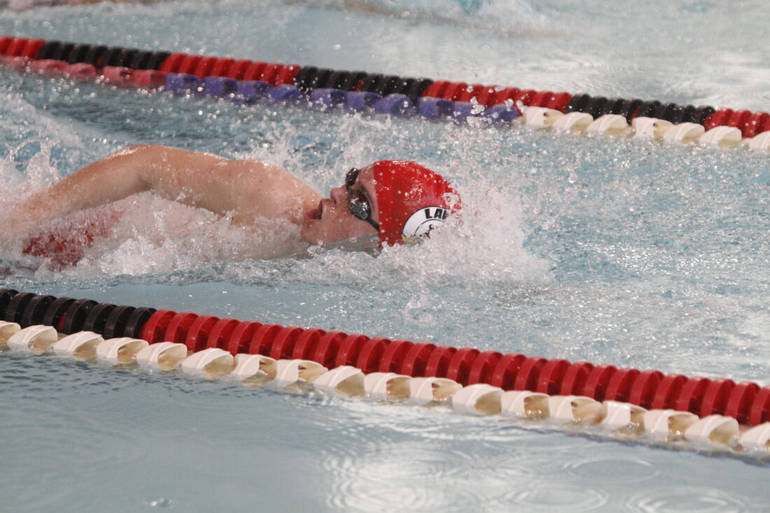The meet started with diving, which Lawrence’s Cale Ward won with 222.45 points. Fellow Lion Liam Meyers placed second with 172.20 points.