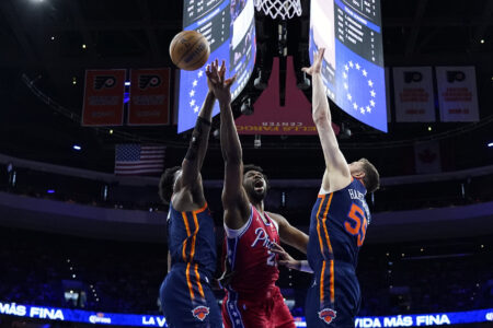 Josh Hart missed all seven shots and Donte DiVincenzo missed his first seven. But Hart grabbed 17 rebounds and the Knicks kept going after missed shots, especially when it was clear Embiid didn’t have the energy to keep chasing them, and scored 21 second-chance points.