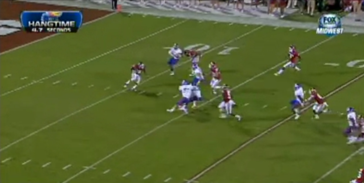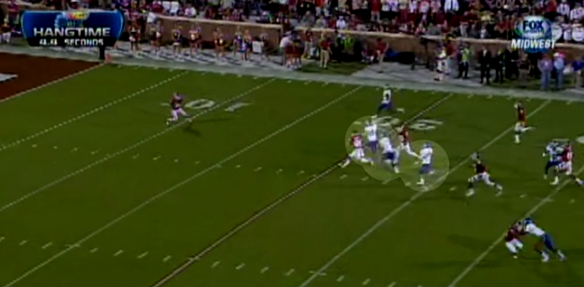 KU in great shape — twice — to stop Oklahoma punt return before it breaks for TD
