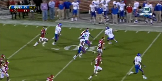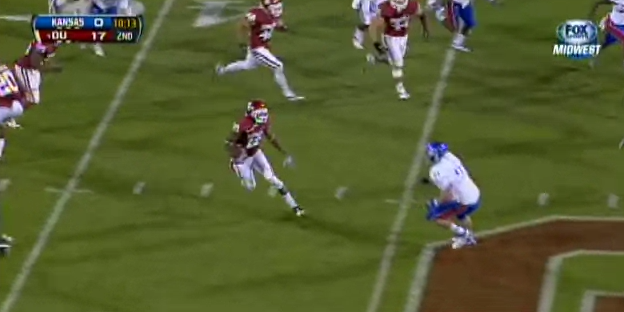 This week, I’ve split our “Breakdown” into two blog posts. This one will focus on Oklahoma returner Justin Brown’s 90-yard punt return for touchdown against Kansas last week. (We’ll look at Roy Finch’s 100-yard kickoff return for touchdown Friday.)