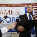 Democrat James Thompson speaks to supporters at the Murdock Theatre in Wichita, Kan., Tuesday, April, 11, 2017. Thompson came up short in his bid to beat Republican state Treasurer Ron Estes in a special election to replace current CIA director and former U.S. Rep Mike Pompeo in the Kansas 4th congressional district. (Travis Heying/The Wichita Eagle via AP)