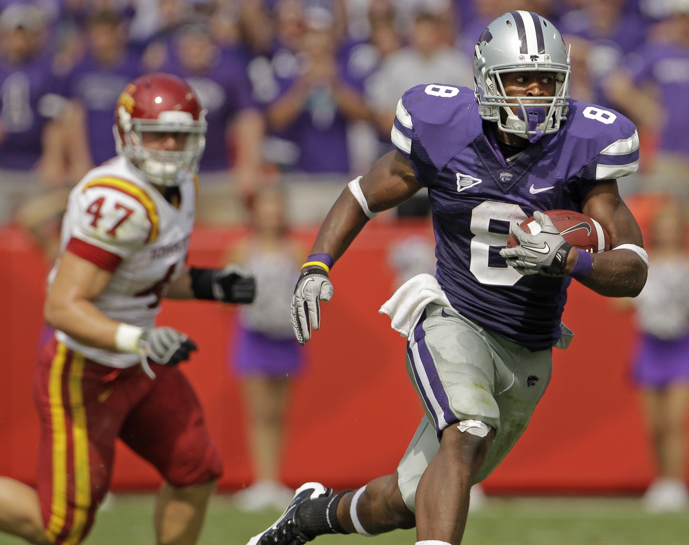 during the second quarter of an NCAA football game against Iowa State and Kansas State Saturday, Sept. 18, 2010 in Kansas City, Mo. (AP Photo/Charlie Riedel)