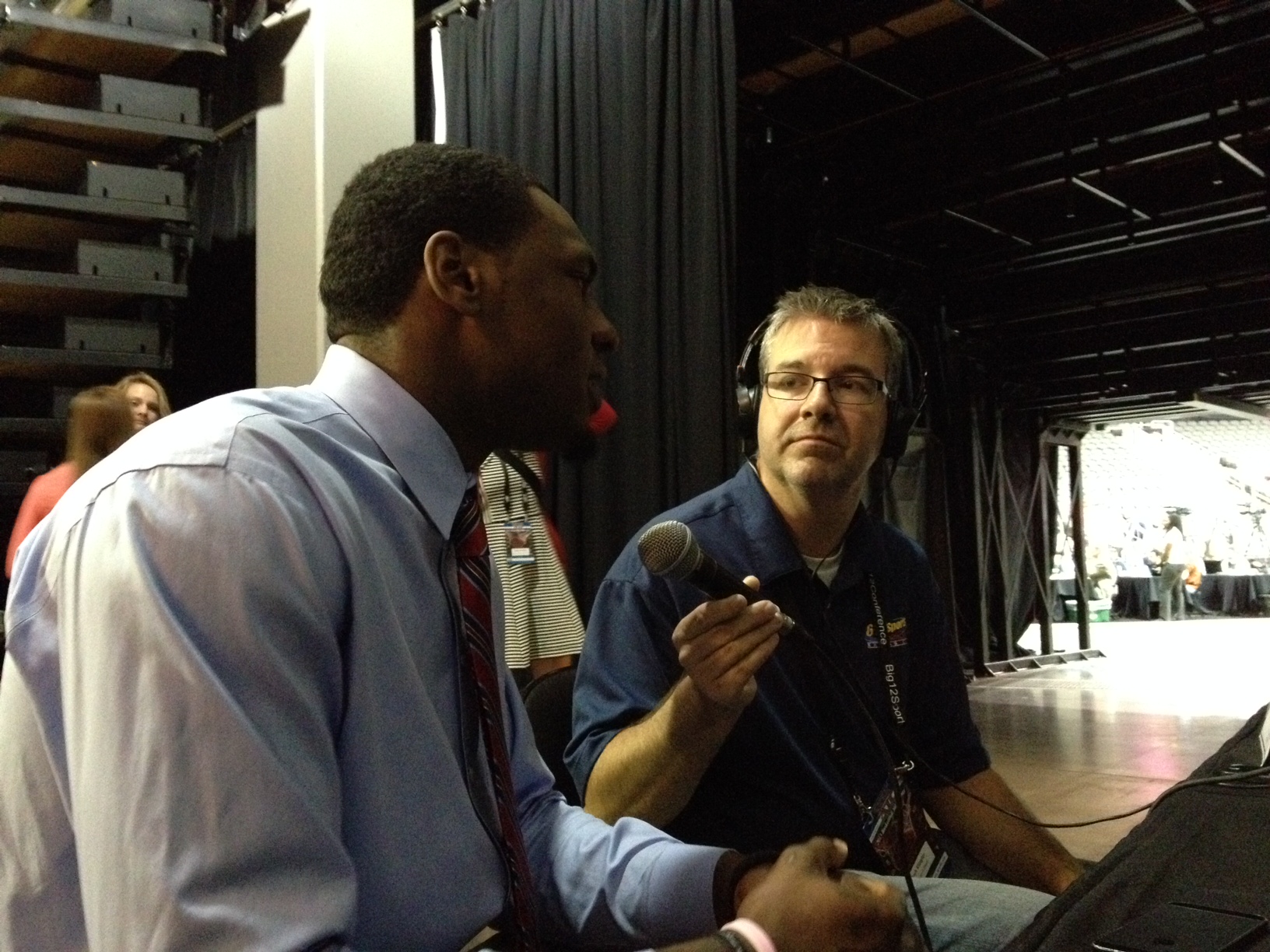 A couple photos of KU’s players doing radio interviews about 20 minutes ago.