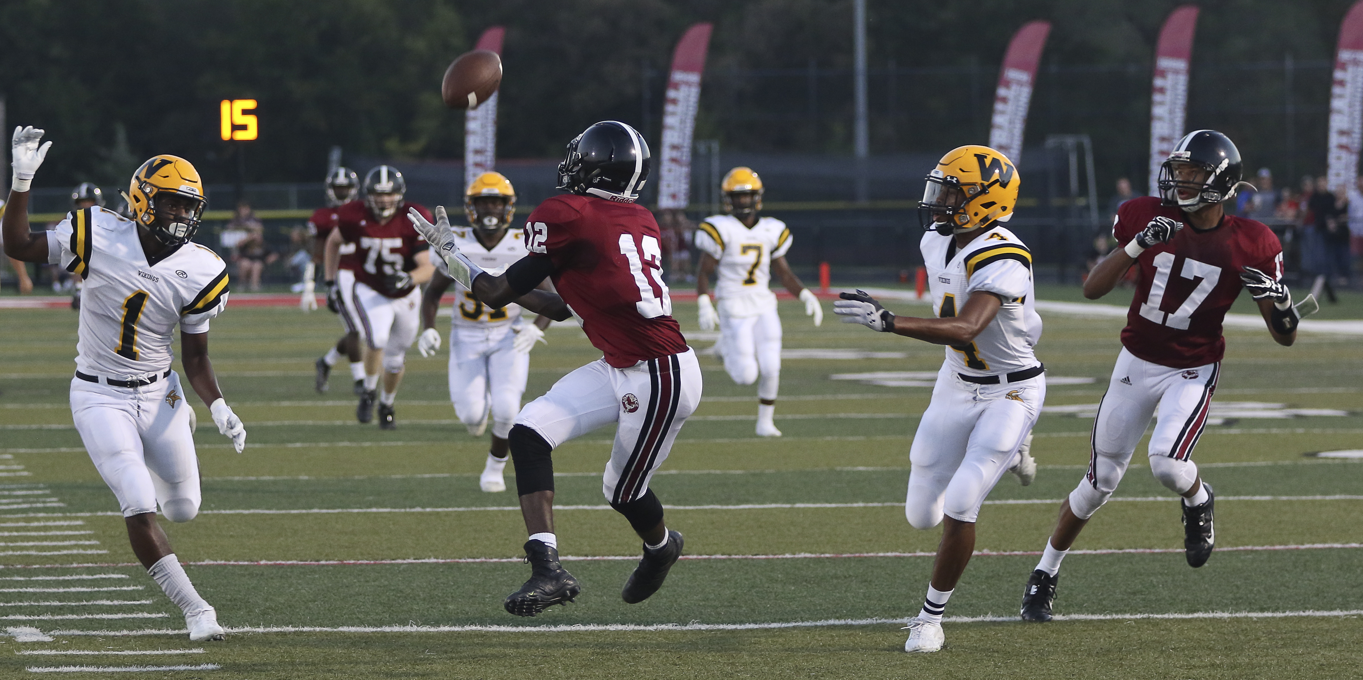 2. Ekow Boye-Doe, jr. WR/CB — Boye-Doe scored the first touchdown of his varsity career on the first drive of the second half, making a nine-yard grab over the middle. He ended up with five catches for 79 yards and he grabbed an interception in the fourth quarter when he said he cramped up, but fortunately the ball was tipped to him.