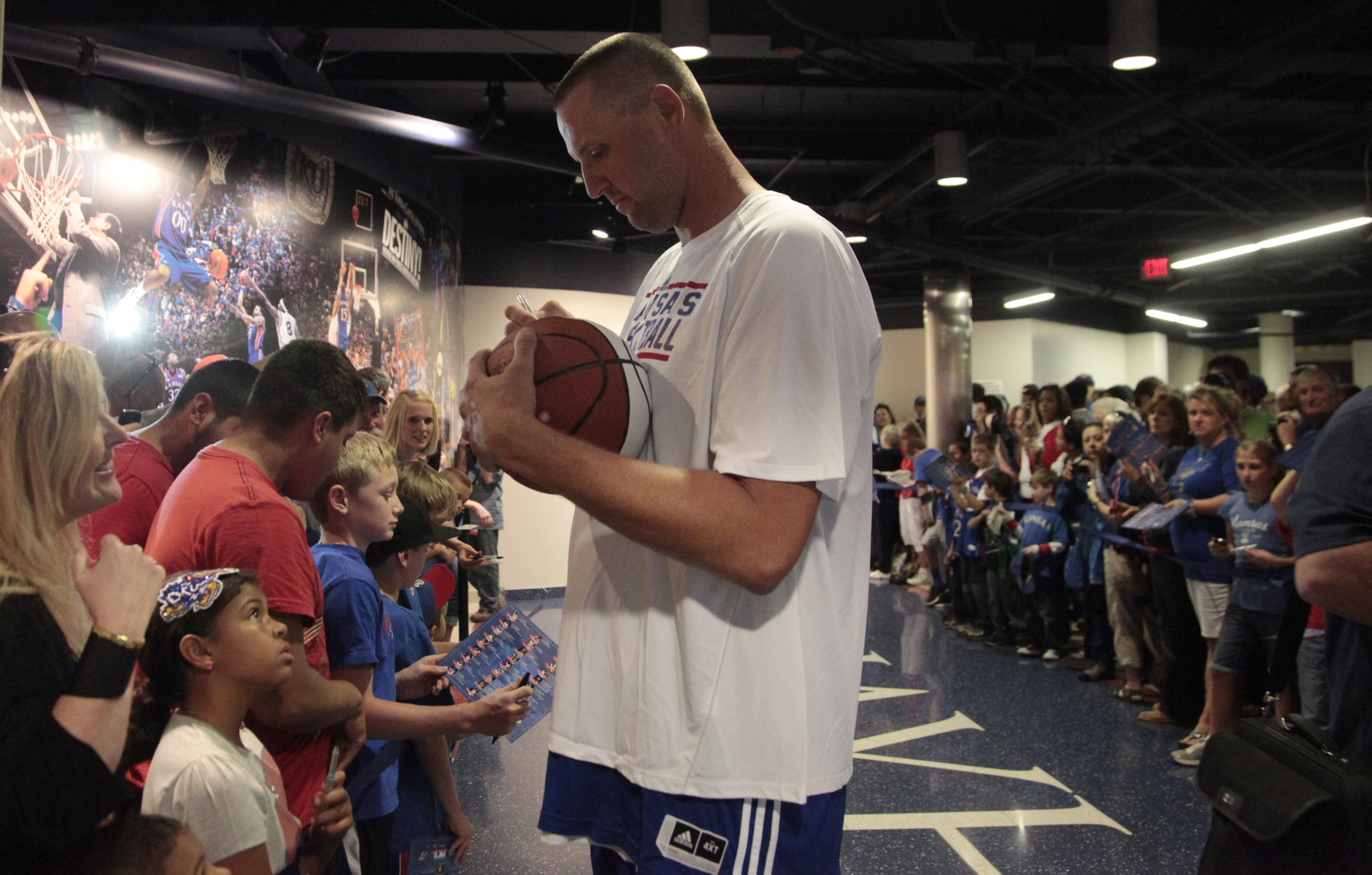 Greg Ostertag signs autographs before the tip-off of the Legends of the Phog game Saturday, Sept. 24, 2011 at Allen Fieldhouse.