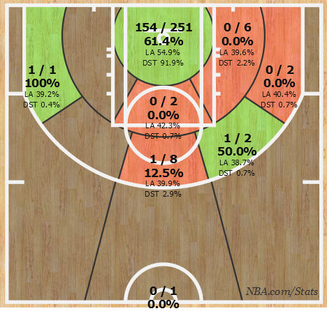 An overview of Tarik Black's rookie-year shot chart, via NBA.com/stats.