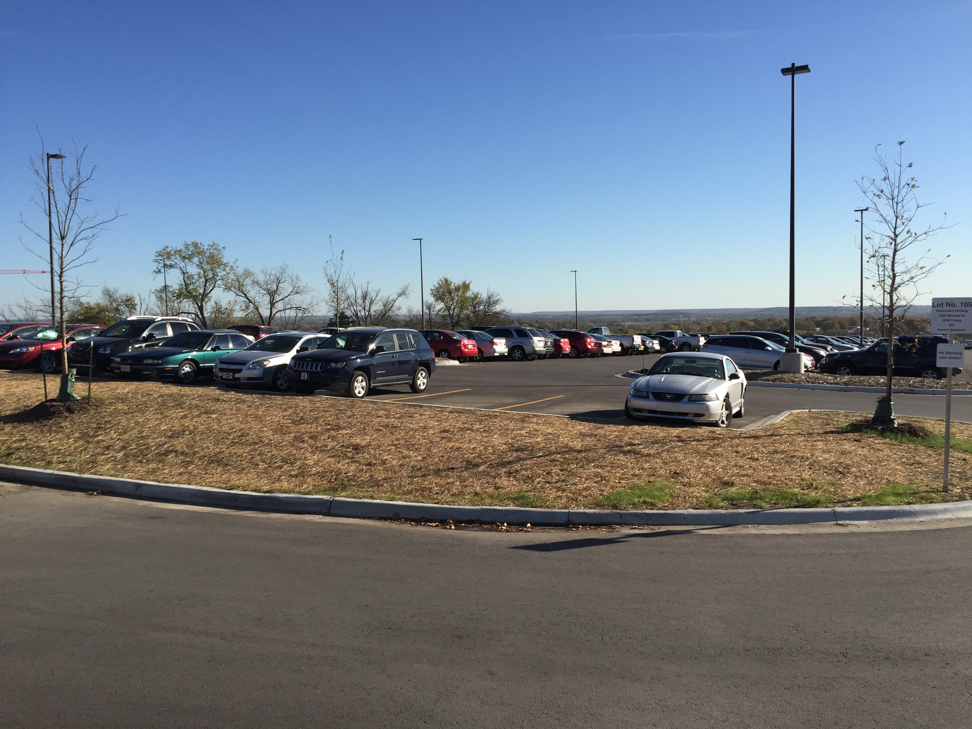 The space where McCollum Hall once stood is now a parking lot, pictured Nov. 9, 2016. The site is at the south end of Daisy Hill on the University of Kansas campus.