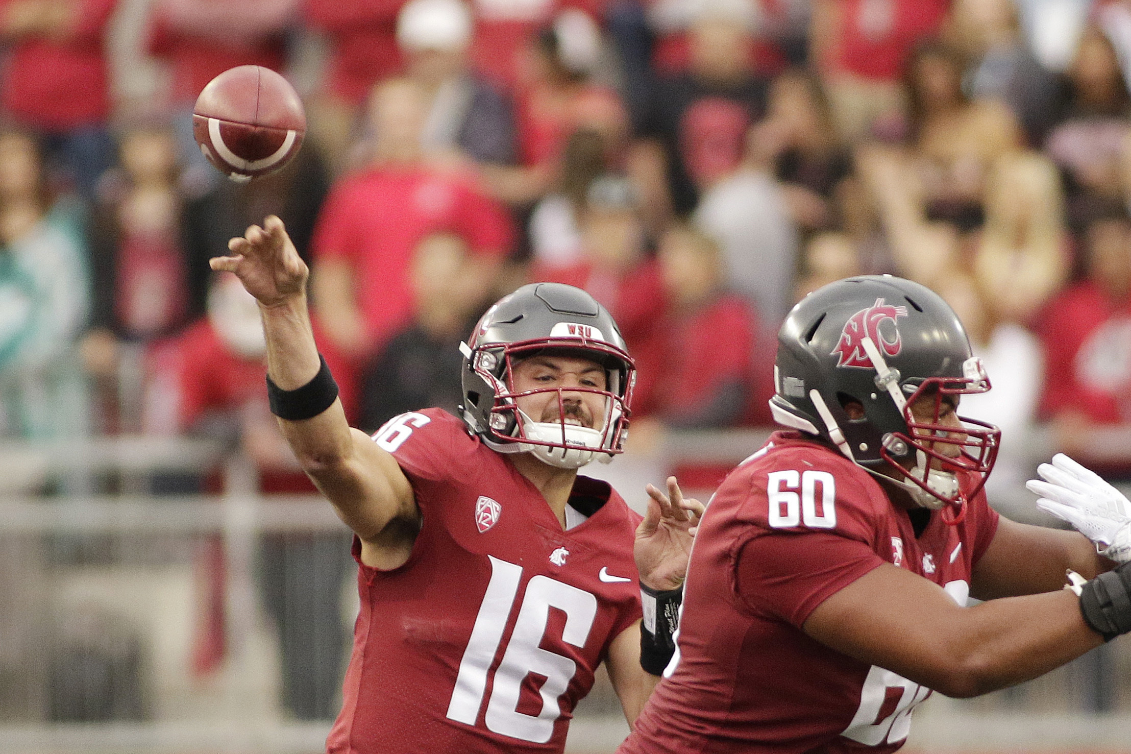 Washington State quarterback Gardner Minshew II (16) throws a pass during the first half of an NCAA college football game against Eastern Washington in Pullman, Wash., Saturday, Sept. 15, 2018. (AP Photo/Young Kwak)