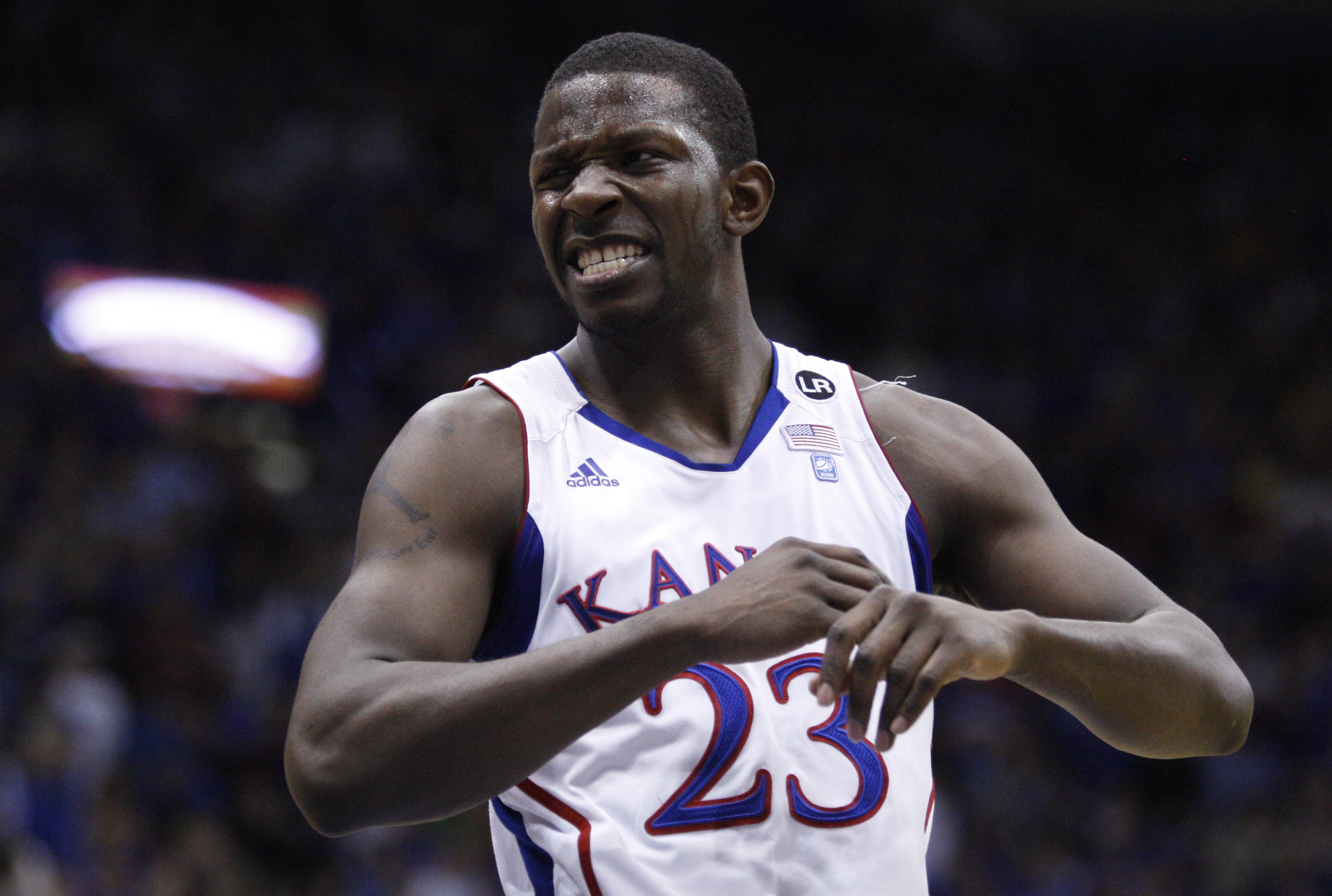 Kansas guard Mario Little bemoans a foul called against him during the first half on Monday, Feb. 7, 2011 at Allen Fieldhouse.