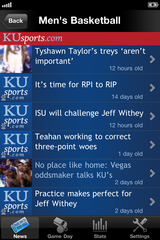 The app also will be a useful source of information during men’s basketball and football games, providing live stats and also up-to-the-second commentary from KUsports.com writers like Tom Keegan, Gary Bedore and Matt Tait.