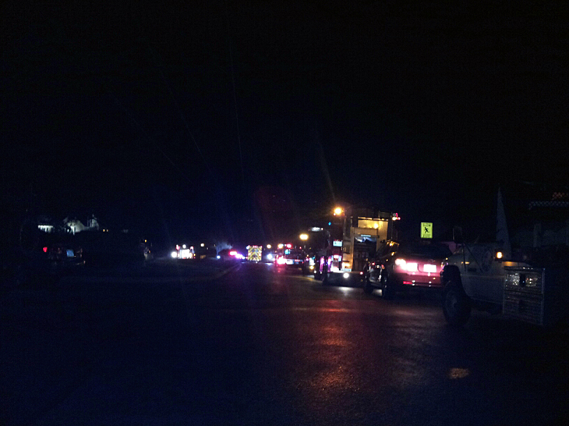 Emergency vehicles from the City of Eudora, Eudora Township and Wakarusa Township Departments line the street as crews work to extinguish the fire. Photo submitted to Operation 100 News by Ashley Walker of Lawrence.