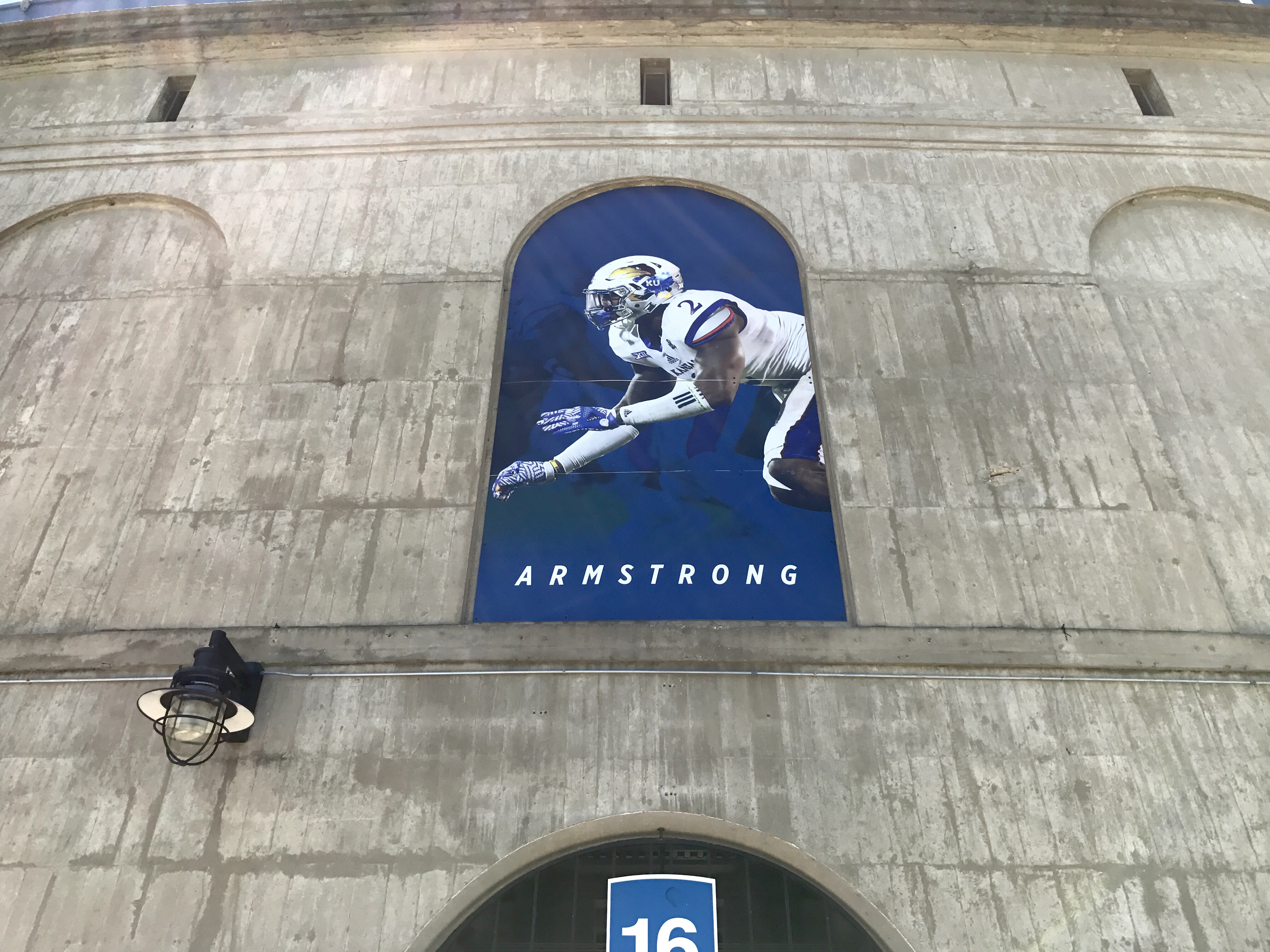 Third-year Kansas football coach David Beaty never has seen junior Armstrong get a big head about any of his accomplishments, so it was an easy decision to sign off on adding the standout defensive end to the stadium’s exterior.