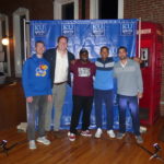 Former Jayhawks, from left to right, Tyrel Reed, Matt Kleinmann, Sherron Collins, Jeremy Case and Brennan Bechard, joined the KUsports.com crew on Thursday, Oct. 26, 2017 at Abe & Jake's in Lawrence to usher in a new season with the KUsports.com Season Tip-Off Party and to celebrate the 10-year anniversary of their 2008 national championship season.