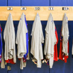 The Jayhawks' practice gear hangs on racks in the practice gym on Friday, Sept. 23, 2016 just after 6 a.m.