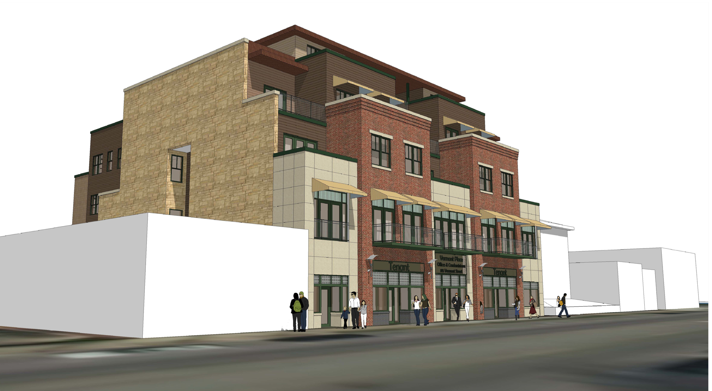 The latest renderings for a building at 815 Vermont Street. Courtesy: Hernly Architects