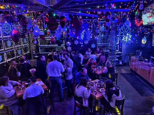 Otherwise, though, the offering is similar: a bar and restaurant setting that is inundated with every type of Christmas decoration imaginable. The space has about one mile worth of Christmas lights, for example.