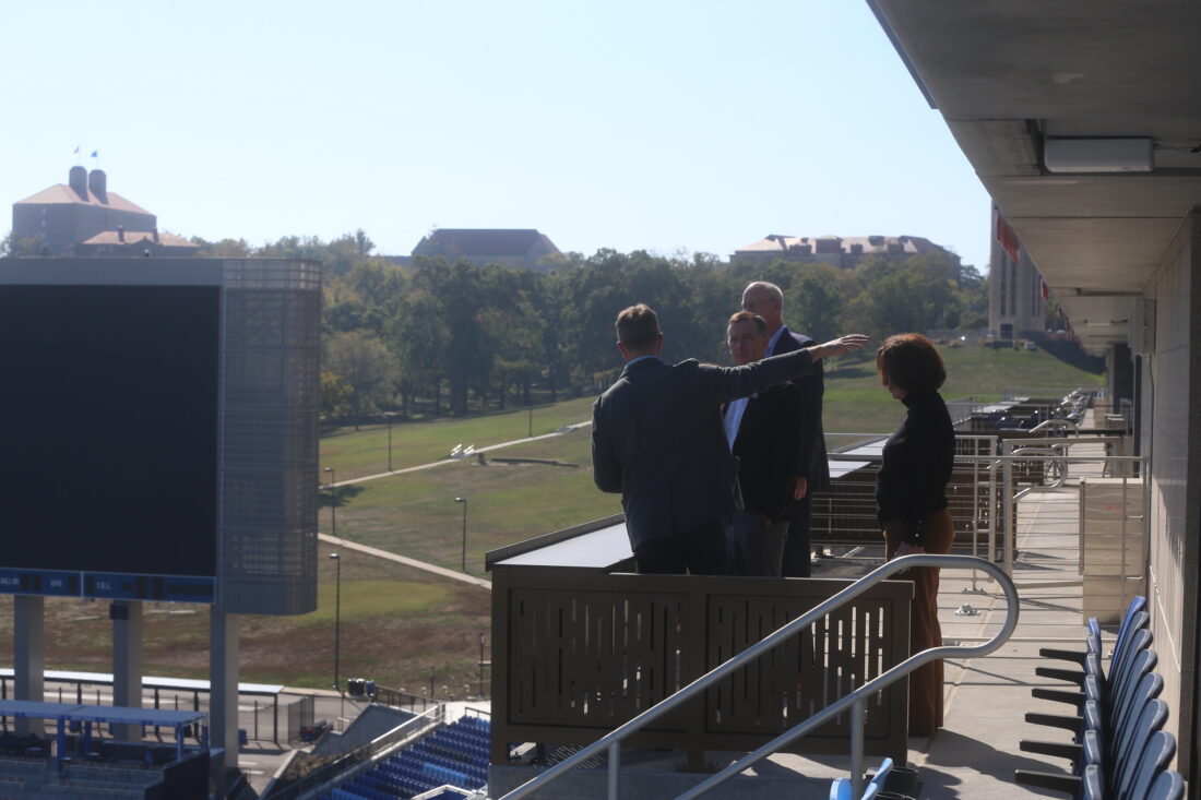 Members of the Kansas Board of Regents take in a view of Mt. Oread from the concourse of David Booth Kansas Memorial Stadium.