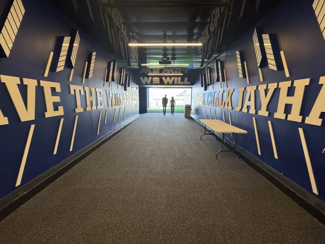 The tunnel leading to the field of David Booth Kansas Memorial Stadium is pictured on Oct. 16, 2025.