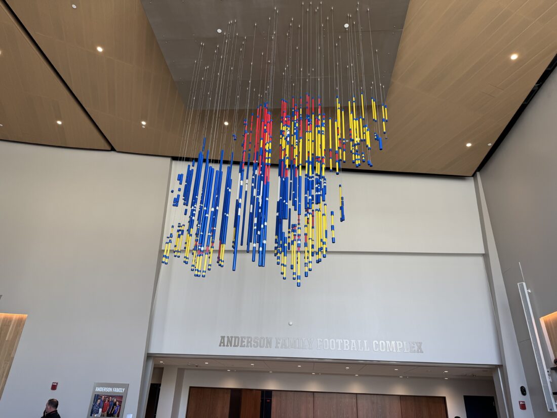 A hanging piece of art at David Booth Kansas Memorial Stadium is pictured on Oct. 16, 2025.