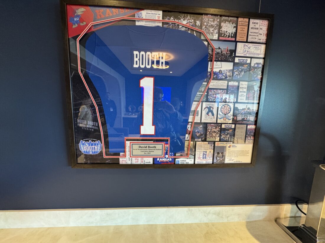 A piece of art hangs in David Booth’s suite in KU’s football stadium, pictured on Oct. 16, 2025.