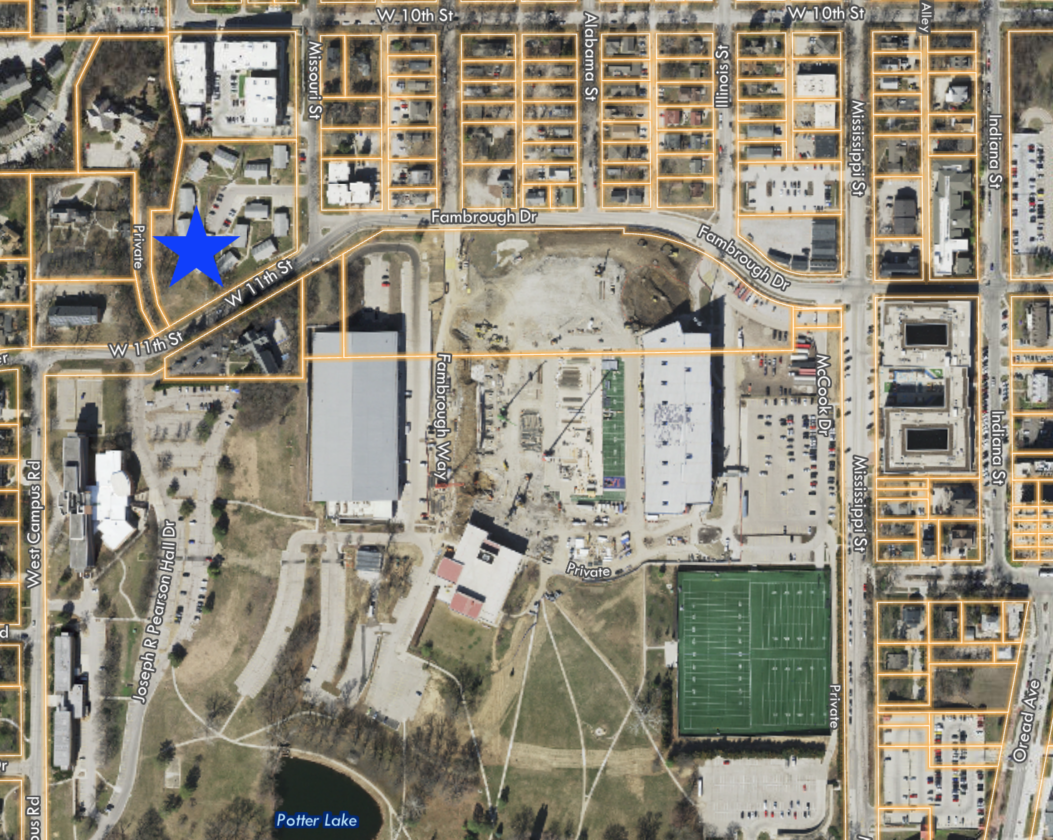 While the proposed parking lot is north of 11th Street, it is not exactly in the single family portion of the neighborhood. The site itself is home to about a dozen post-World War II era garden-style apartment buildings. The KU Endowment Association already owns the property, and its closest neighbors — the Kansas Public Radio complex and the Hawker Apartments — are both owned either by KU or a KU Endowment entity.