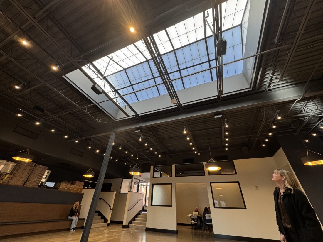 Among the additions to the former mailroom and printing dock space of the Journal-World is a skylight to bring more light into Q39’s dining room.