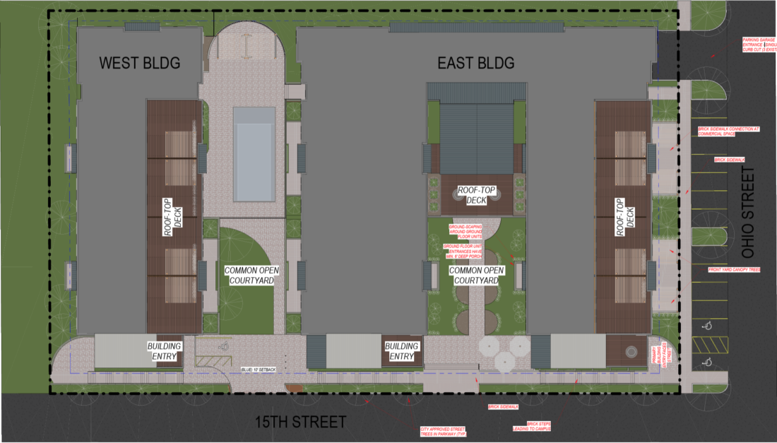 The project already has received its necessary zoning approvals, but the design of the project still needs additional city approvals before it can move forward. The latest plans were submitted for review by the Historic Resources Commission, which reviews the project due to the historic designation for the Oread neighborhood.