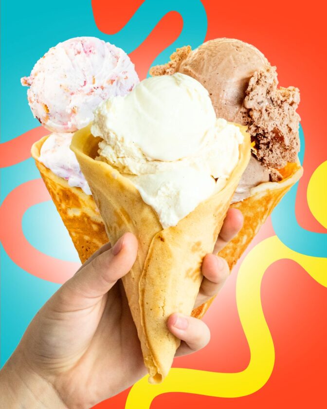 Ice cream and waffle cones from Betty Rae’s are pictured.
