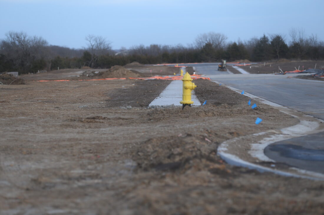 Roads, sidewalks and fire hydrants have been installed in a new subdivision at the intersection of O’Connell Road and E. 28th Street in eastern Lawrence.